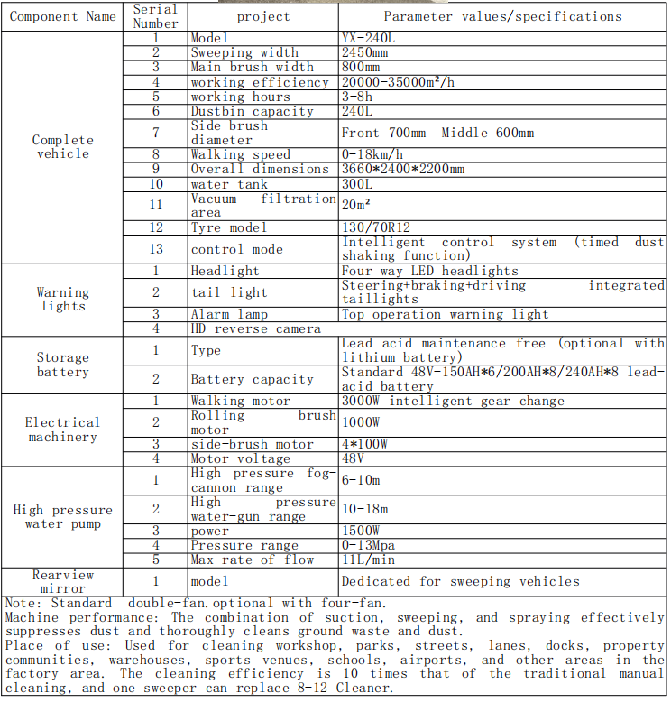 प्रयोगको स्थान: कार्यशाला, पार्क, सडकहरू, लेनहरू, लेनहरू, लेनहरू, जहाजहरू, र अन्य क्षेत्रहरू रूपान्तरण, खेलकुदहरू, र अन्य क्षेत्रहरू सफा गर्ने ठाउँहरू, खेलकुदहरू, र अन्य क्षेत्रहरू सफा गर्न प्रयोग गरियो। सफाई दक्षता 10 पटक परम्परागत म्यानुअनोशियनको 10 गुणा हुन्छ, र एक स्वीरिय ले -12-12 क्लीनर बदल्न सक्छ।